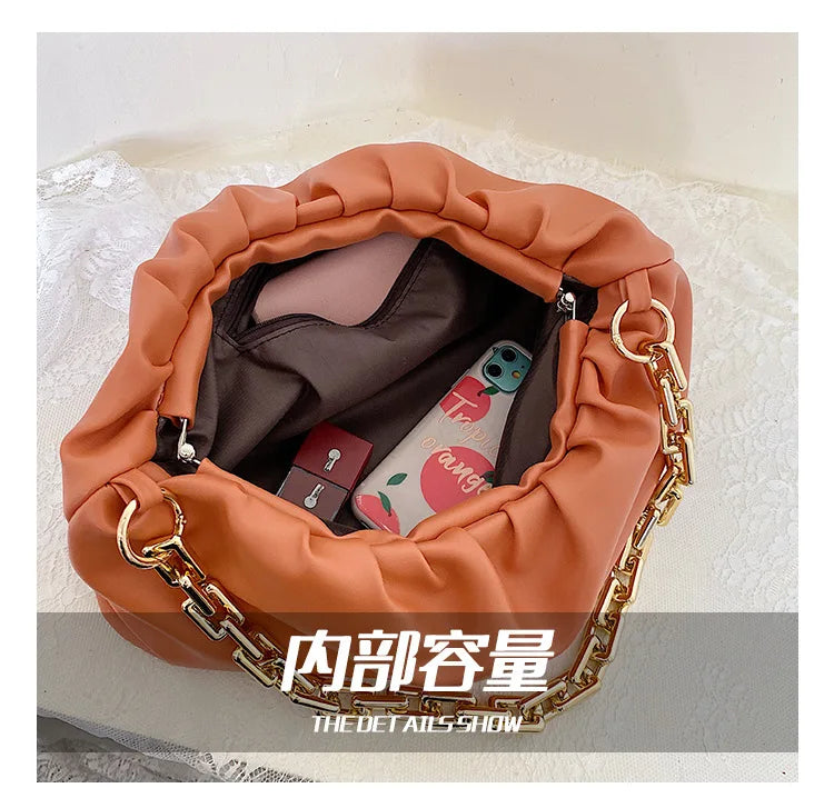 Elevate your style with this trendy chain bag made of high-quality PU leather. Features a unique cloud dumpling shape design that adds a touch of elegance to your outfit.