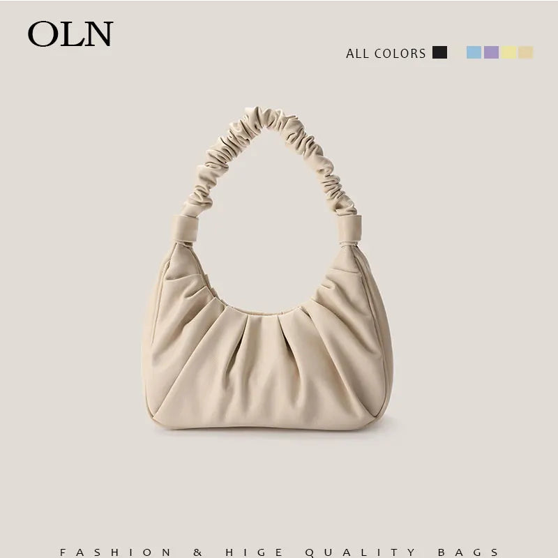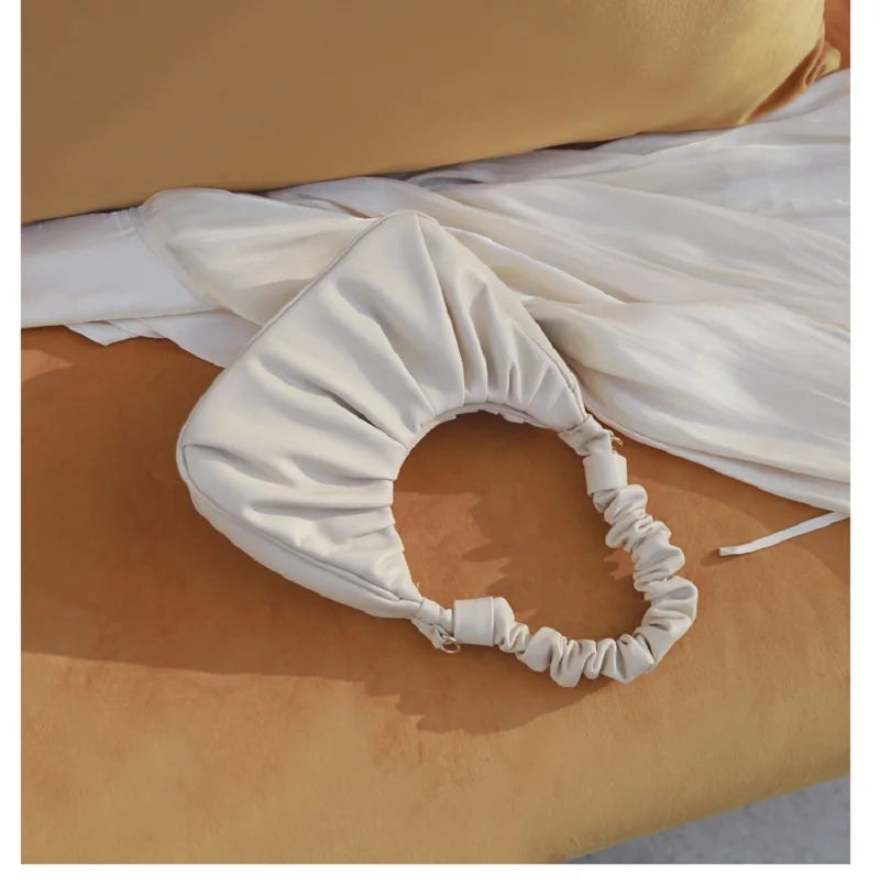Cloud Purple Pleated Tote Bag Women Beige Leather Shoulder Bags
