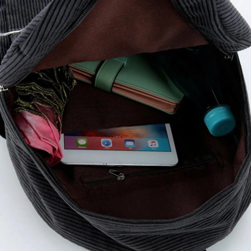 College Style Corduroy Backpack Large Capacity Student Backpack