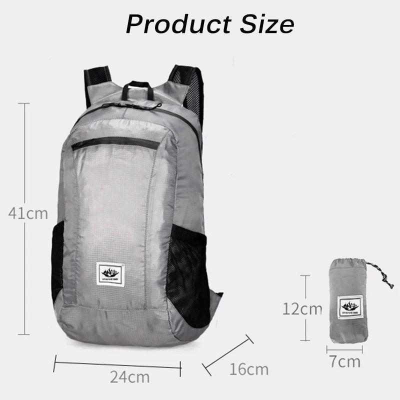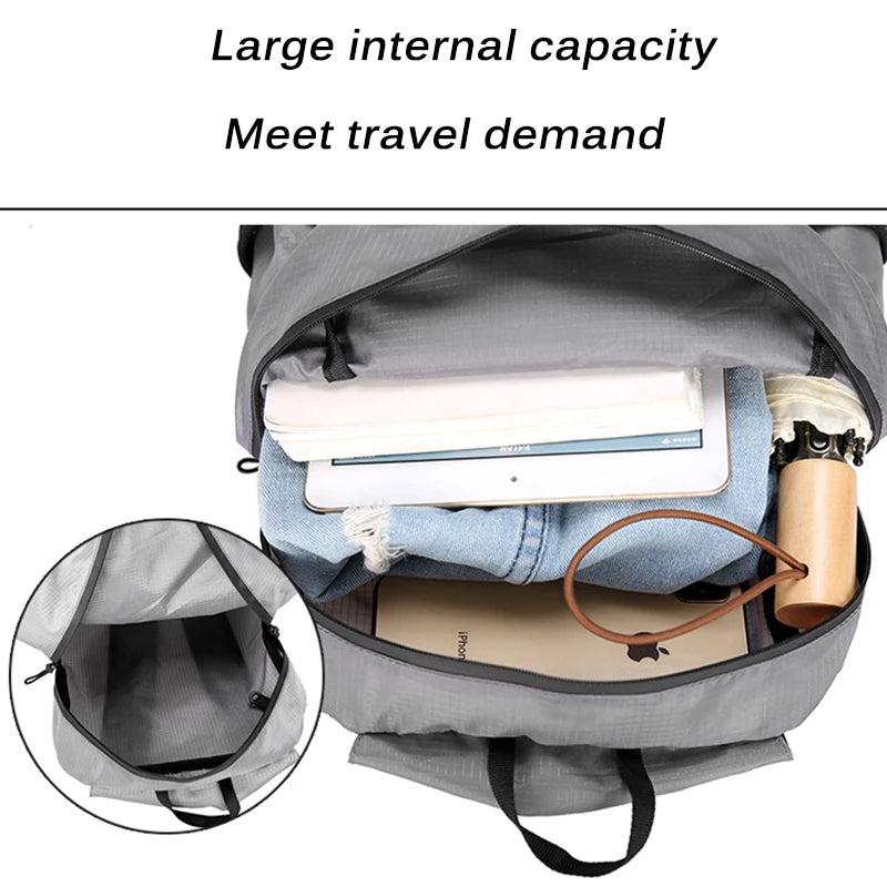 This portable backpack is perfect for outdoor activities with its large capacity and lightweight design. It's waterproof and ideal for travel or sports.