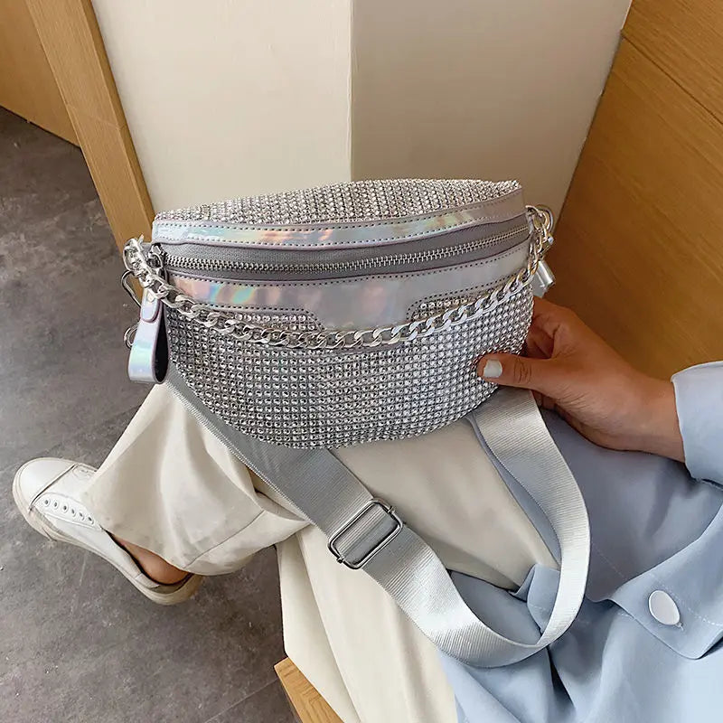 Colorful Rhinestone Saddle Bag PU Leather Shoulder Handbag for Women