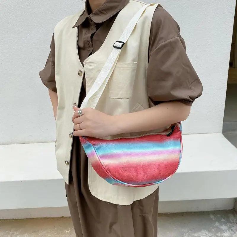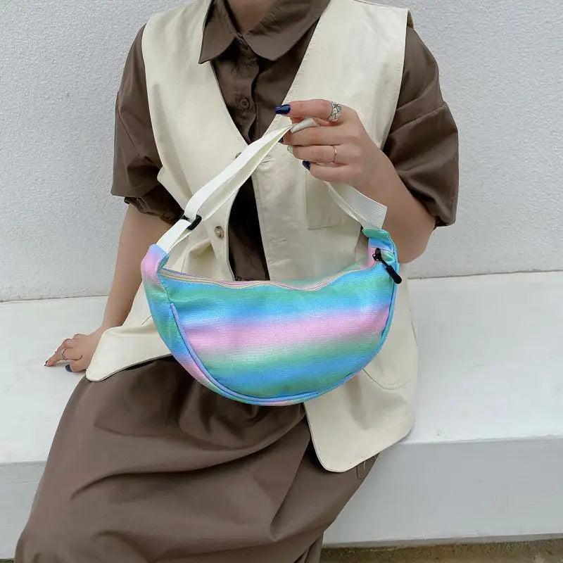 Colorful Striped Shoulder Bags Women Cross Body Bag Leisure Students Handbags