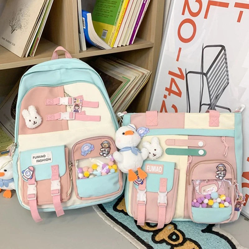 Contrast Colors Backpack Large Capacity Shoulder Bag