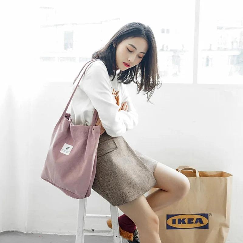 Corduroy Canvas Shoulder Bag Eco-Friendly Storage Handbag