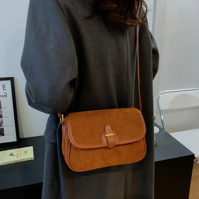 Stay stylish with this soft corduroy messenger bag, perfect for women. It features a retro design that adds a touch of vintage charm to your outfit.