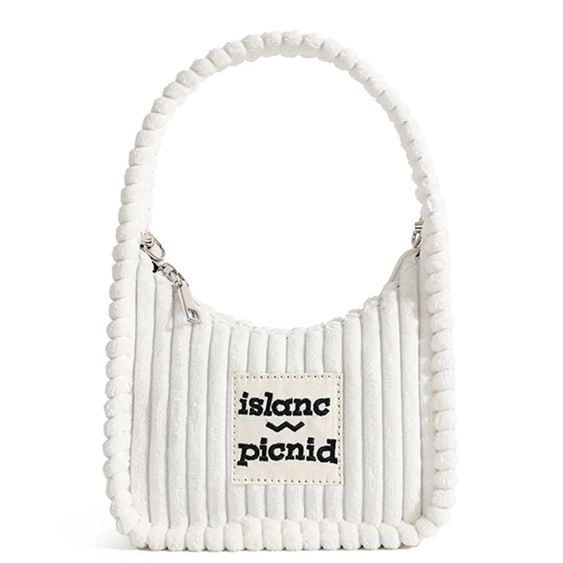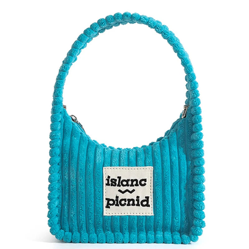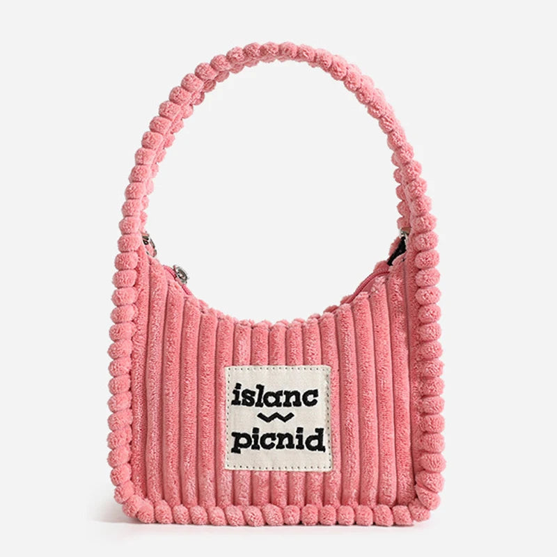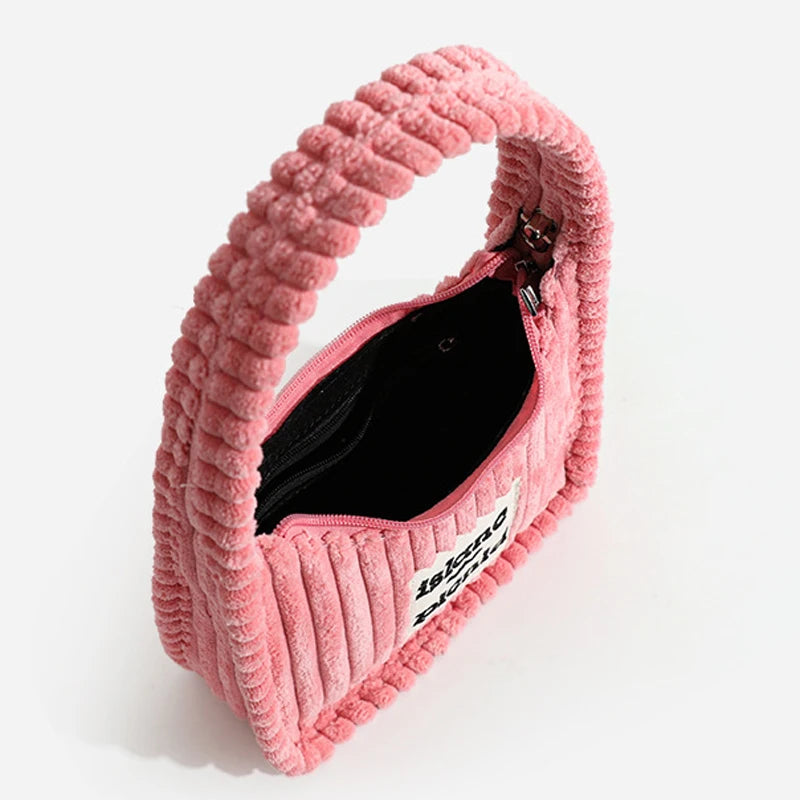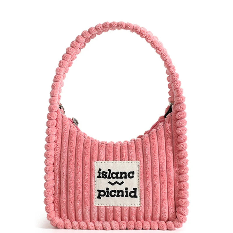 This stylish shoulder bag is made of corduroy material, featuring a chain design. It is perfect for daily use and can be worn as a crossbody bag.