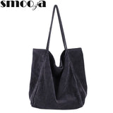 Corduroy Shoulder Bag Large Capacity Tote Handbag Folding Shopping Bags