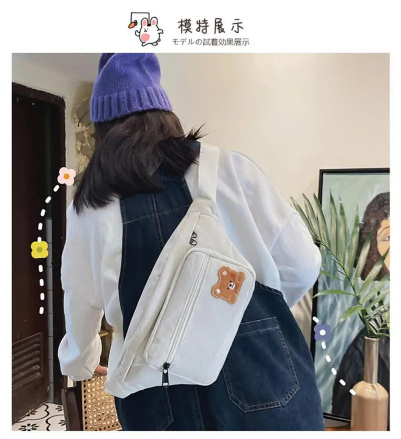Description:This messenger bag features a cute bear design and is made of soft corduroy material. It has a zipper pocket for secure storage and a phone bag for easy access.Features: Soft corduroy material Cute bear design Zipper pocket for secure storage Phone bag for easy access Suitable for both men...