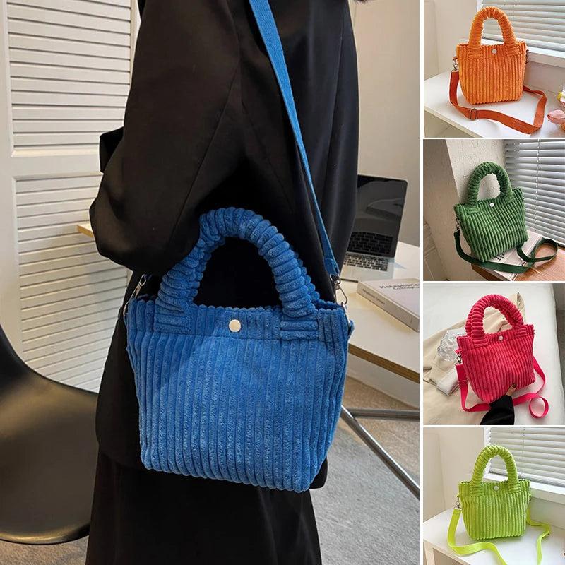 This plush corduroy tote bag is the perfect accessory for women. It can be used as a shoulder bag, messenger bag, crossbody bag, bucket bag, or shopper purse.