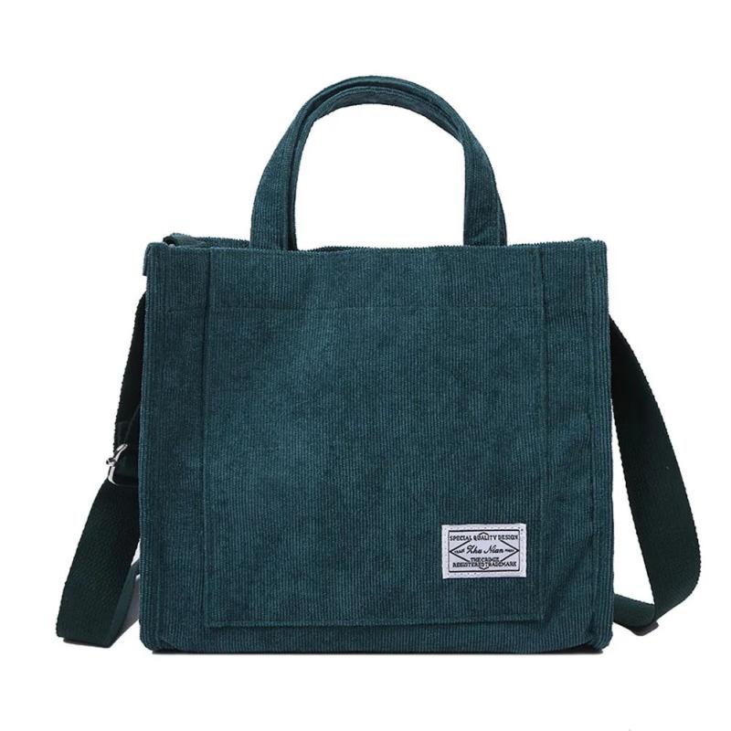 This vintage messenger bag is perfect for women looking for a casual tote. Made from high-quality corduroy and cotton canvas, it features a convenient zipper closure and shoulder strap.