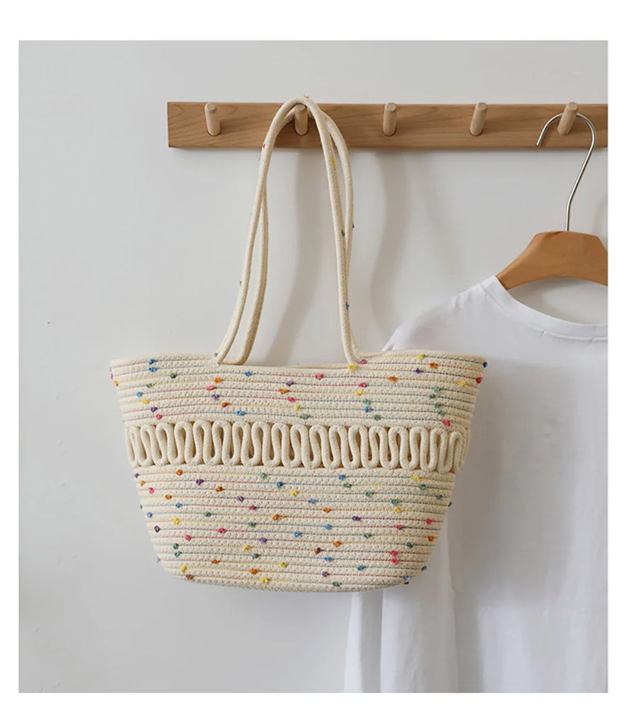 Cotton Woven Tote Bag Summer Beach Shoulder Handbags