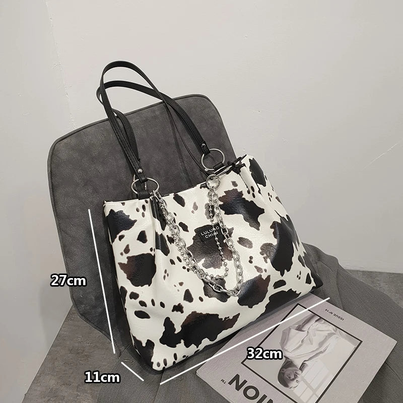 Cow Pattern Women's Shoulder Bag Chain Large Tote