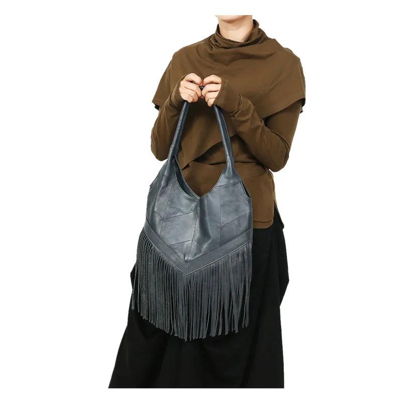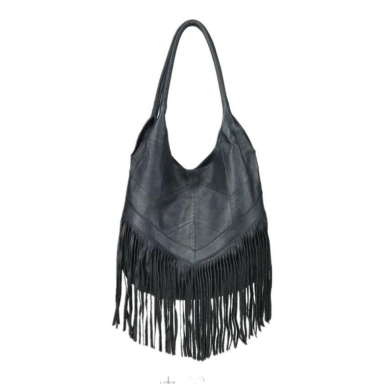 Cowhide Leather Fringe Hobo Bag Women Handbag Tassel Shoulder Bag