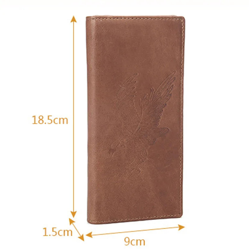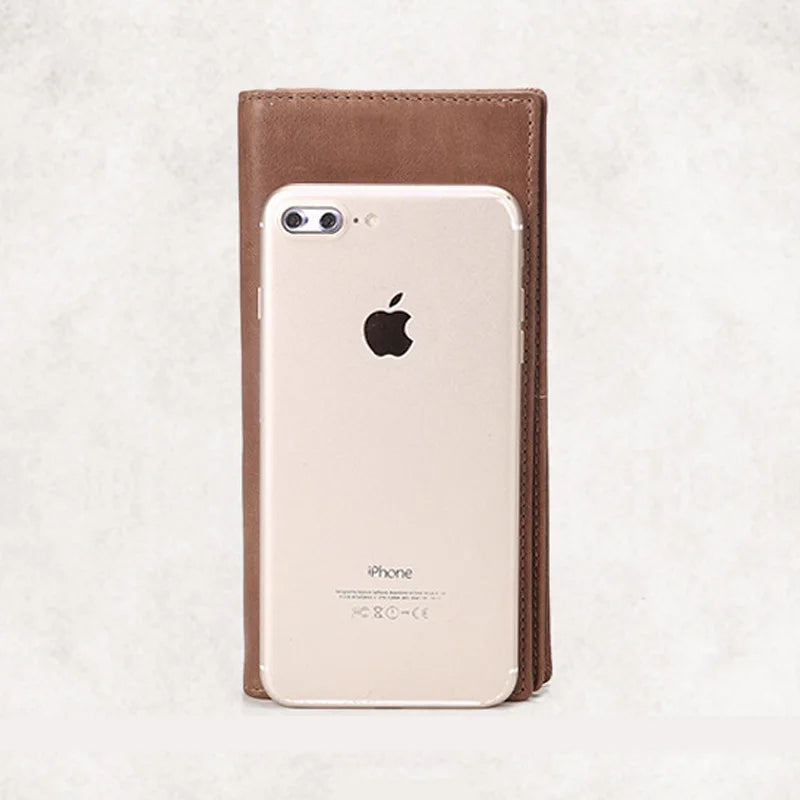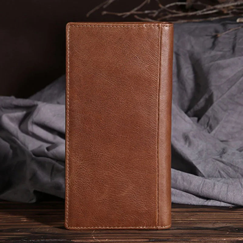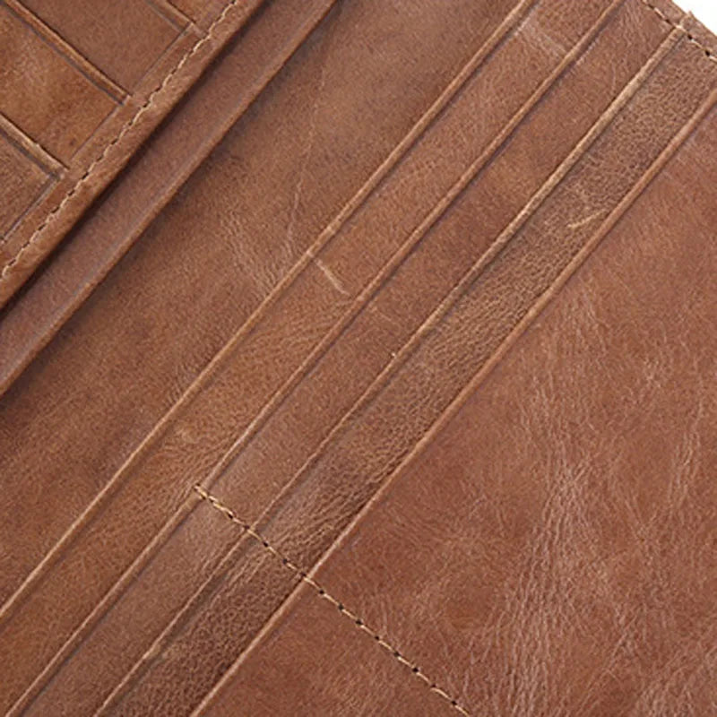 Cowhide Money Clip Oil Wax Leather Long Wallet