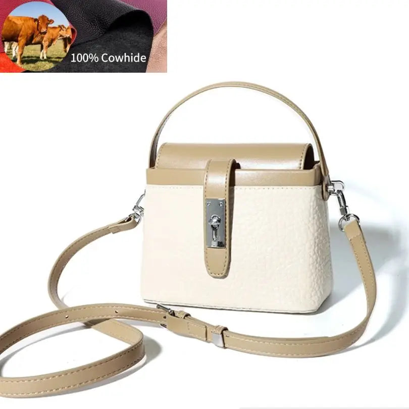 Cowhide Shoulder Bag Handbag Square Ladies Tote Leather Crossbody Bag
