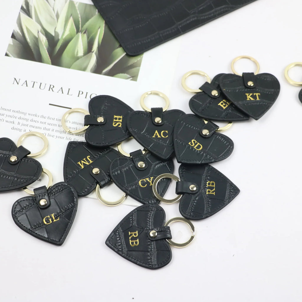This stylish keychain features a crocodile pattern cow leather with a heart design, perfect for women.