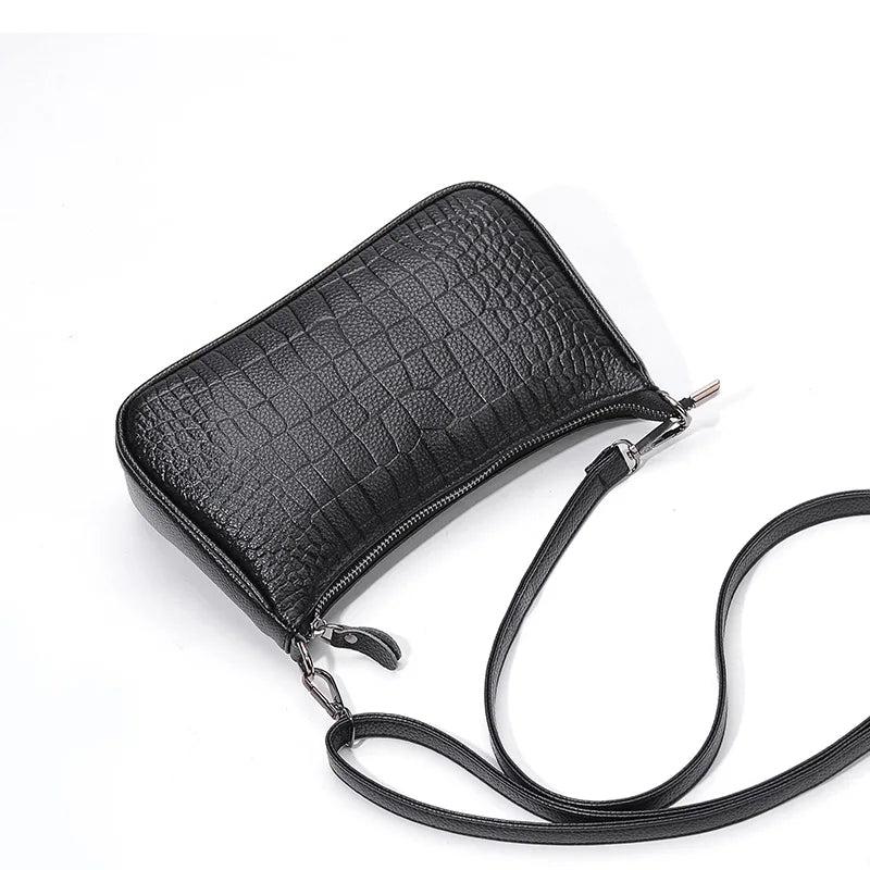 This stylish women's bag is made of cowhide leather with a crocodile pattern and features a zipper closure. Perfect for everyday use and versatile enough to complement any outfit.