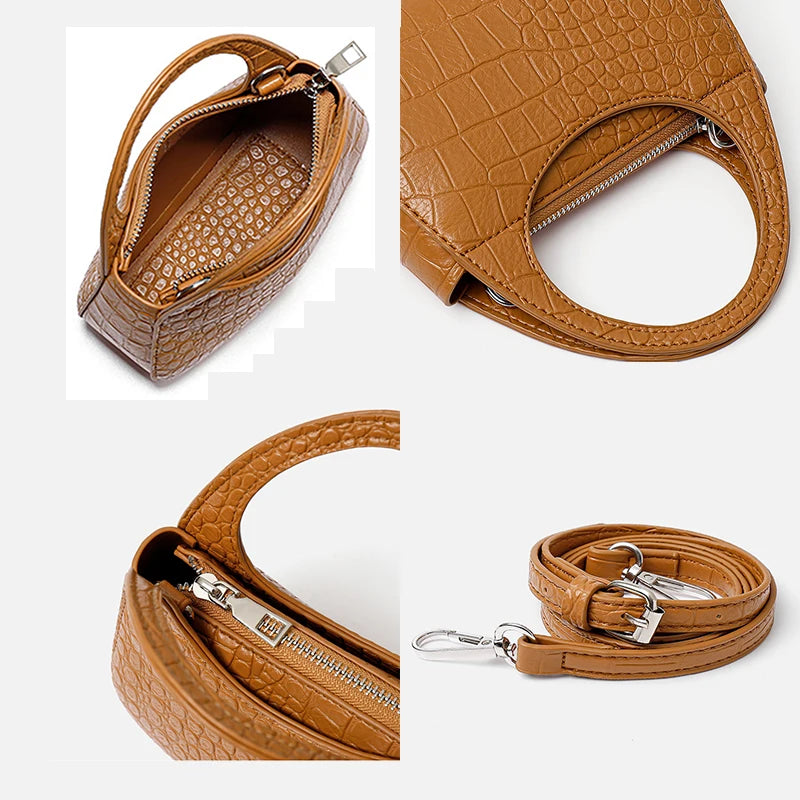 This vintage crocodile pattern PU leather handbag is a stylish accessory for women. It features a small size that is perfect for carrying your essentials. The shoulder bag design adds convenience to your daily outings.