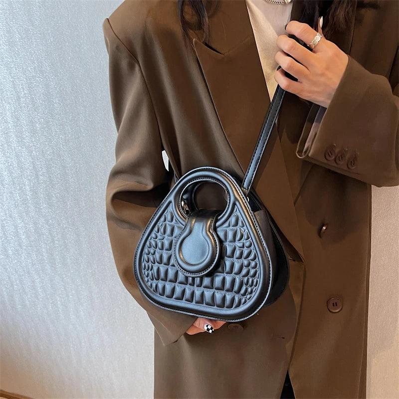 This stylish shoulder bag is made of high-quality PU leather with a crocodile pattern design. It features multiple compartments and a crossbody strap for versatile use.