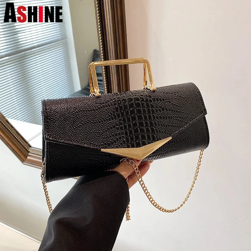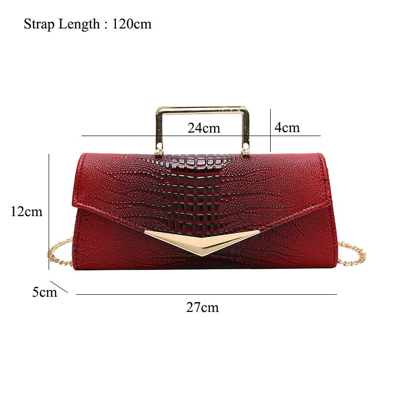 Elegant crocodile-patterned handbag with chains for women. Perfect for casual or formal outings.