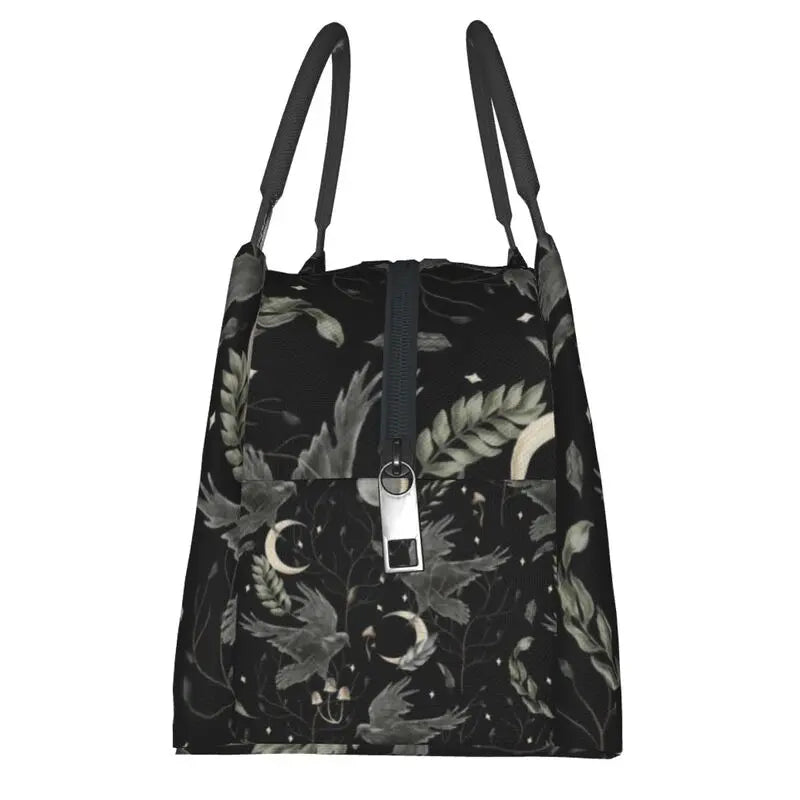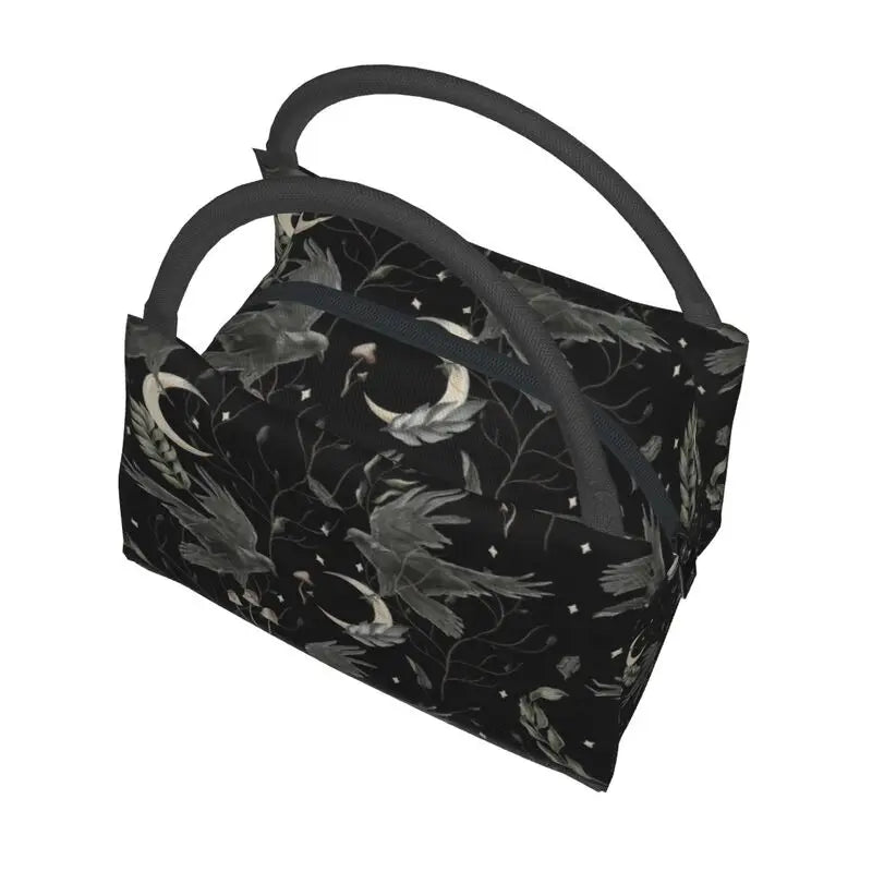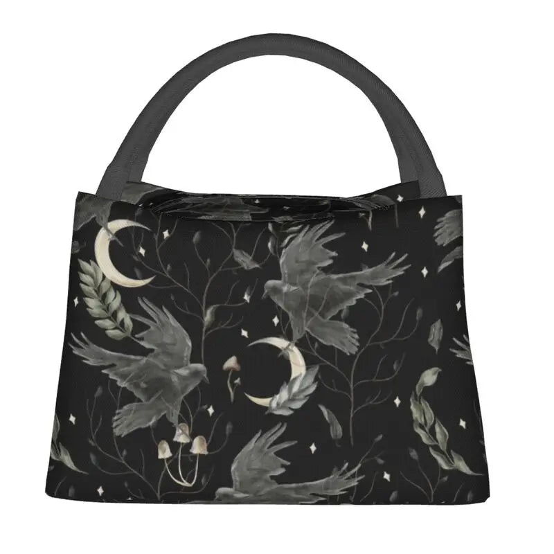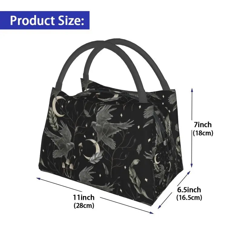Crow Moon Insulated Lunch Bag for Women Portable Halloween Witch Thermal Cooler