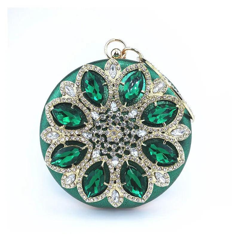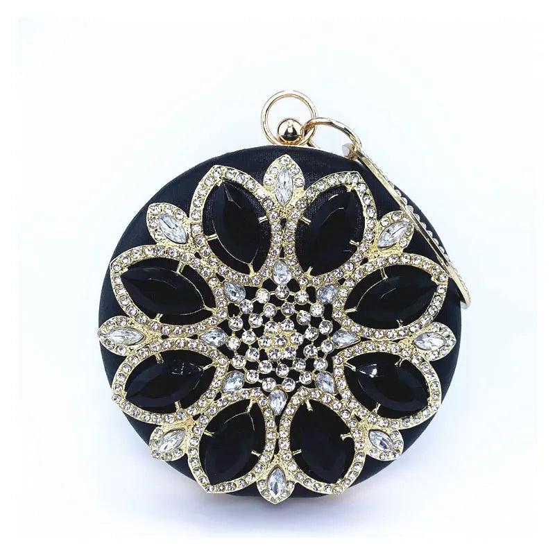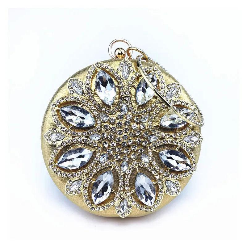 Elegant clutch purse with crystal embellishments, perfect for evening events and weddings. Can be worn as a shoulder bag or carried as a top handle handbag.