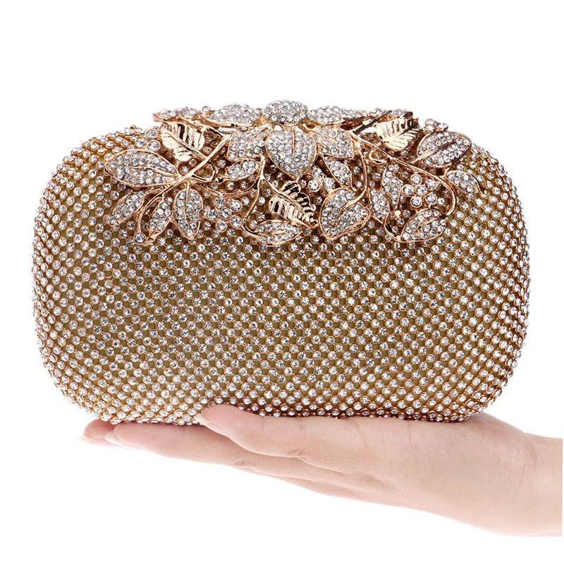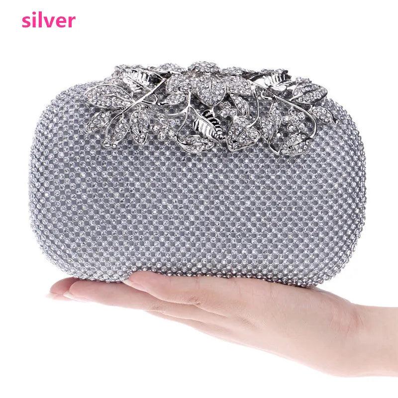 Crystal Flower Evening Bag Clutch Wedding Party Prom Purse Handbag