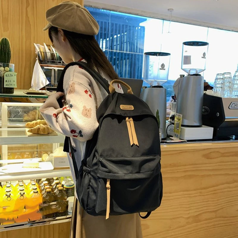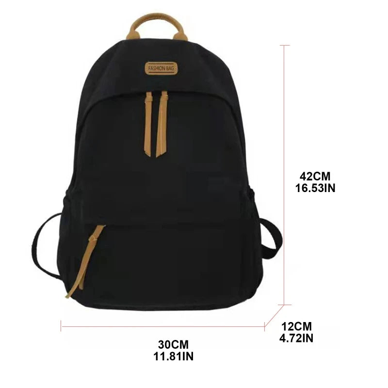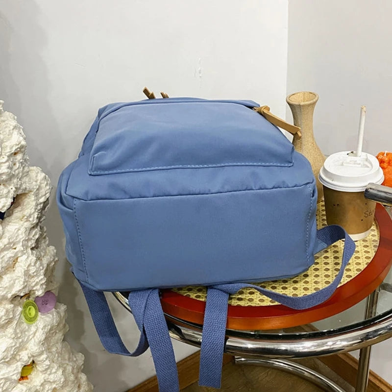 This women's backpack is made of durable nylon material, suitable for school, travel, and daily use. It has a spacious interior for books, laptops, and other items.
