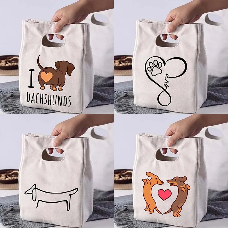 • Canvas insulated cooler bag with adorable Dachshunds design