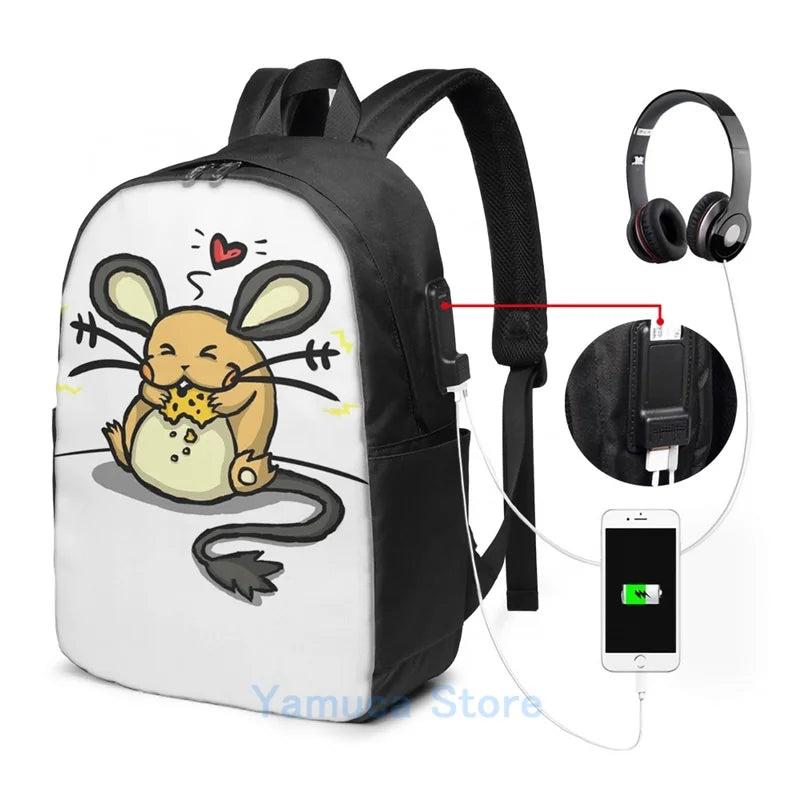 Dedenne Snack Time USB Charge Backpack School bags Travel laptop bag