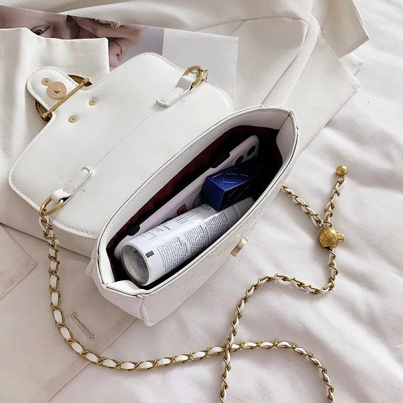 This small shoulder bag is designed for women with a deer lock and chain strap. Made of pure materials, it's perfect for daily use.