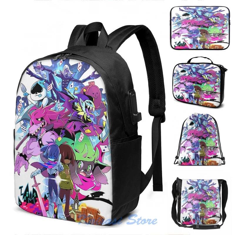 Deltarune Funny Graphic USB Charge Backpack School Travel Laptop Bag