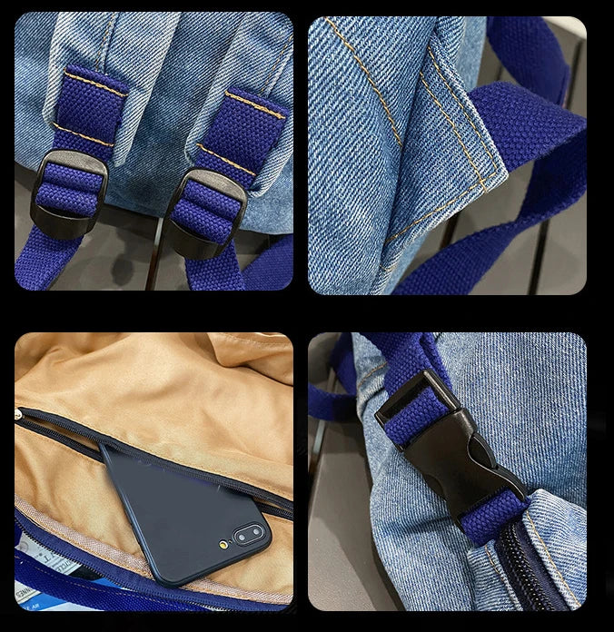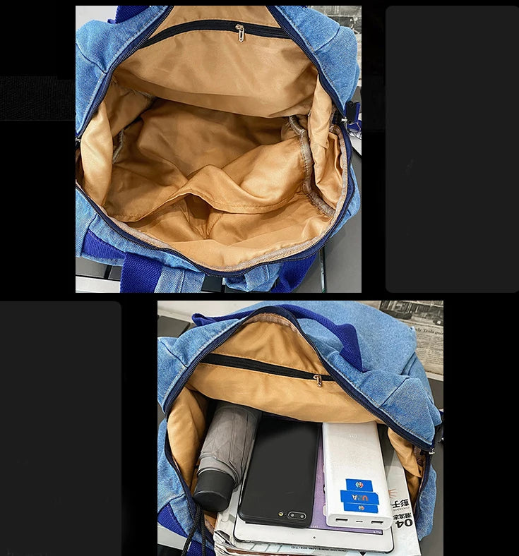 Denim School Bag for Teenagers Girls Laptop Bookbags Rucksack Mochila