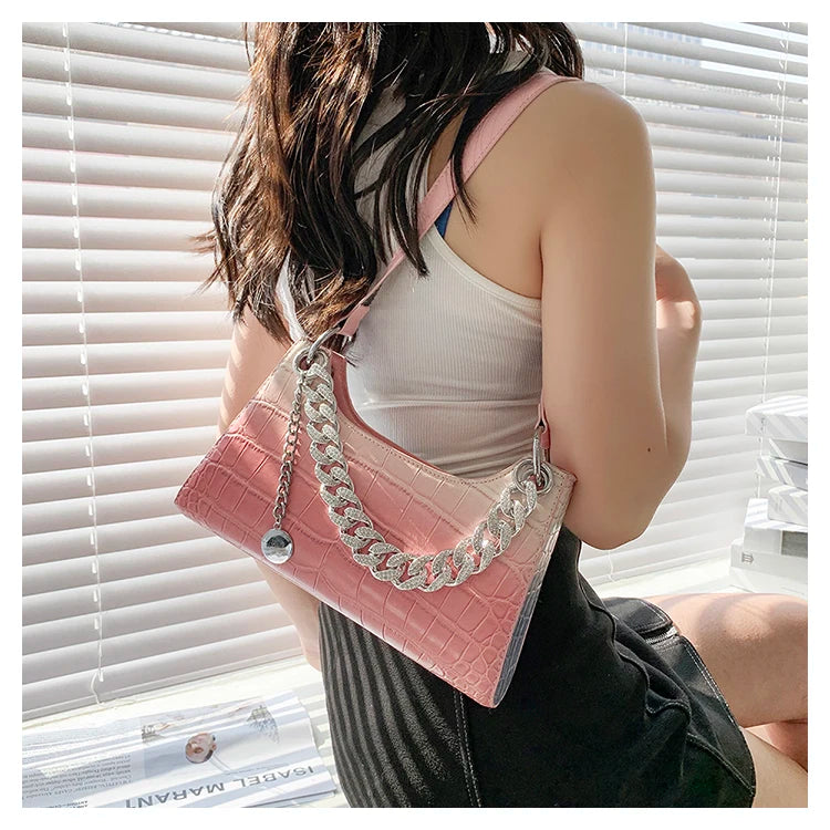 Diamond Chain Tote Bag PU Leather Women's Handbag Crocodile Pattern Shoulder Bag
