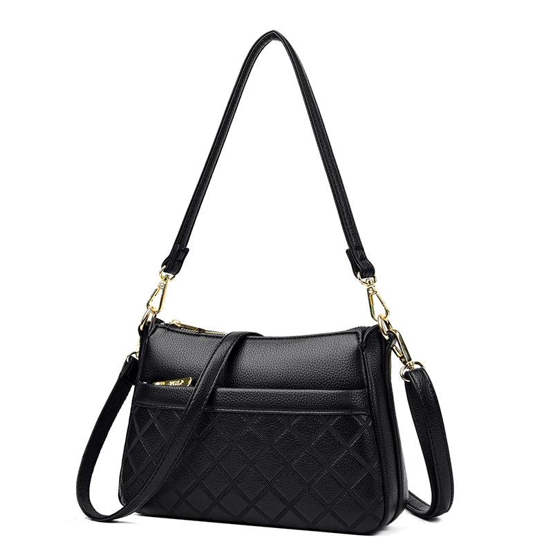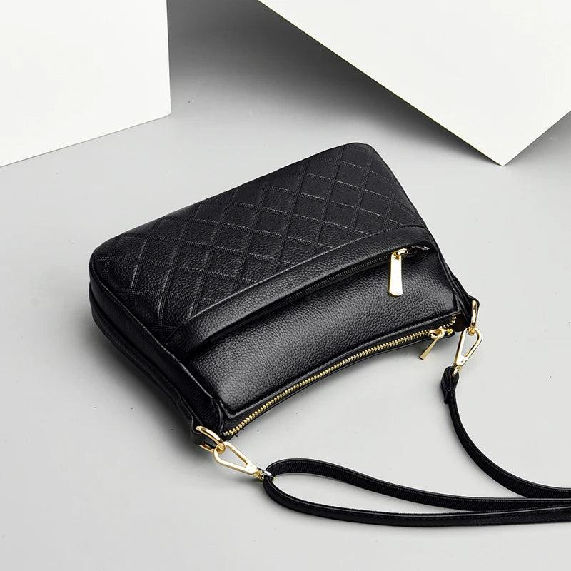 Stay stylish with this elegant shoulder bag featuring a diamond lattice design. The zipper closure keeps your essentials secure. Made from high-quality leather, this purse is a versatile accessory for any occasion.