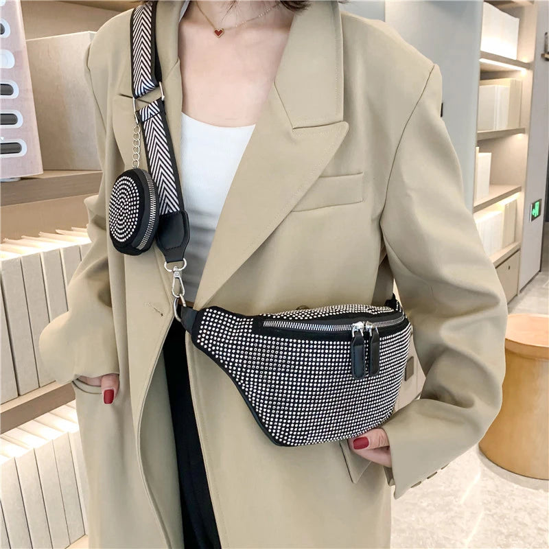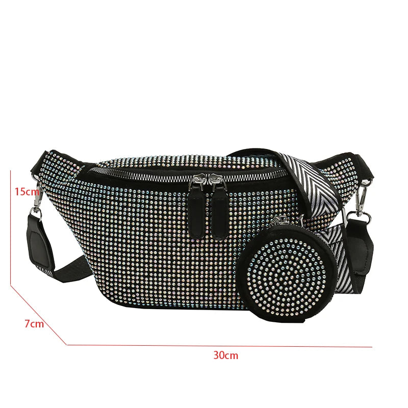 Diamond Studded Fanny Pack Women Crossbody Chest Bag