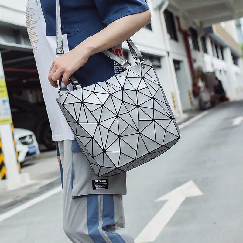 Diamond Tote Geometric Quilted Shoulder Bag Laser Plain Folding Handbag