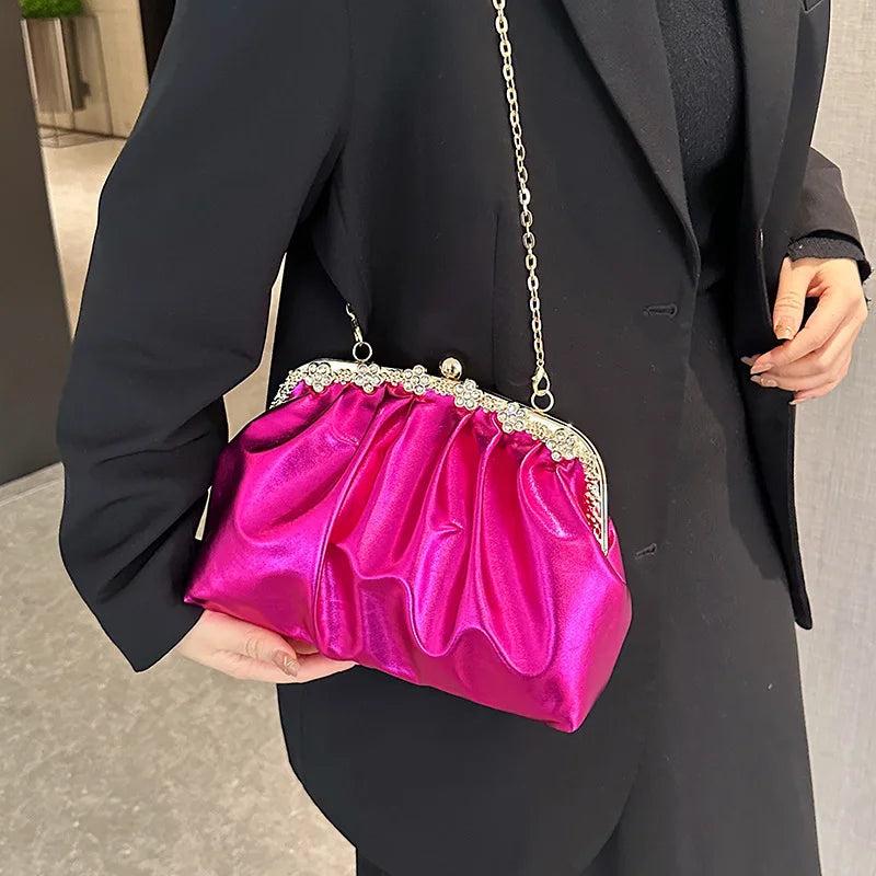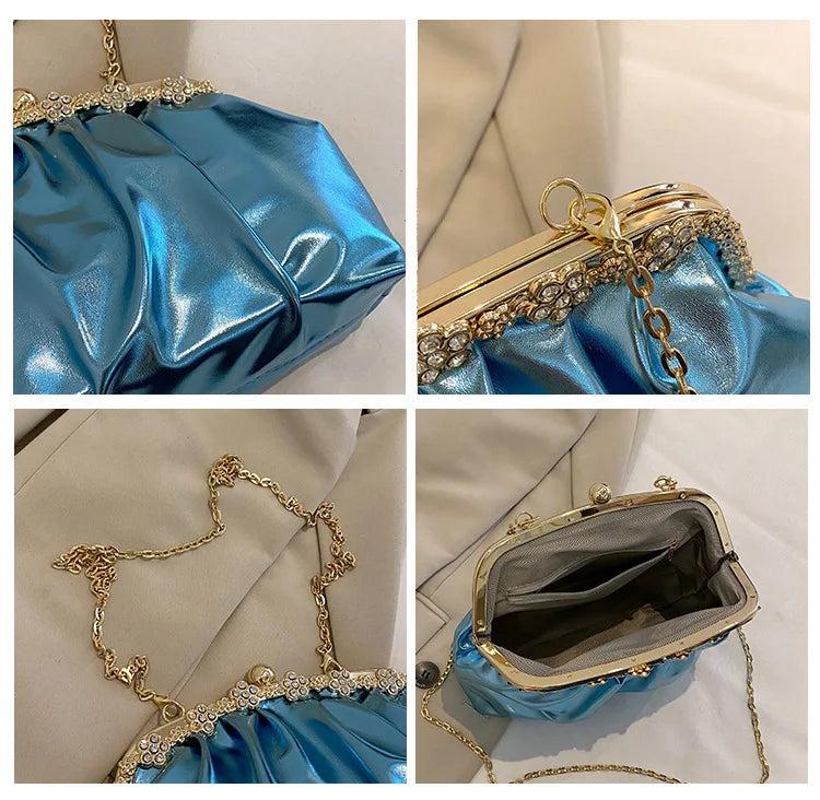 This elegant clutch bag is perfect for parties, weddings, or evening events. It features a diamond design and comes with a small chain shoulder strap.