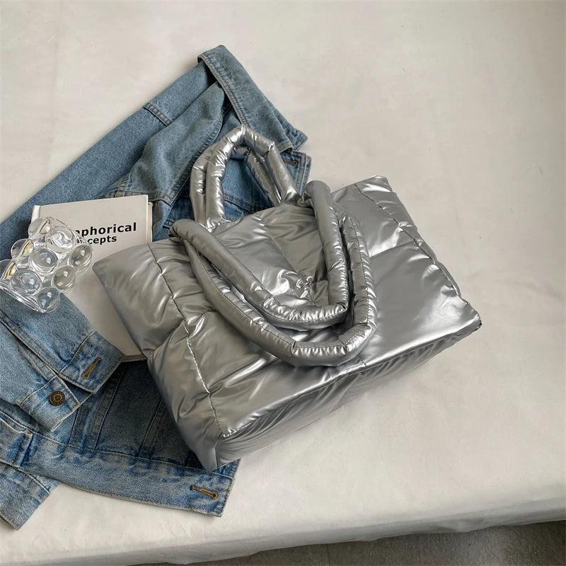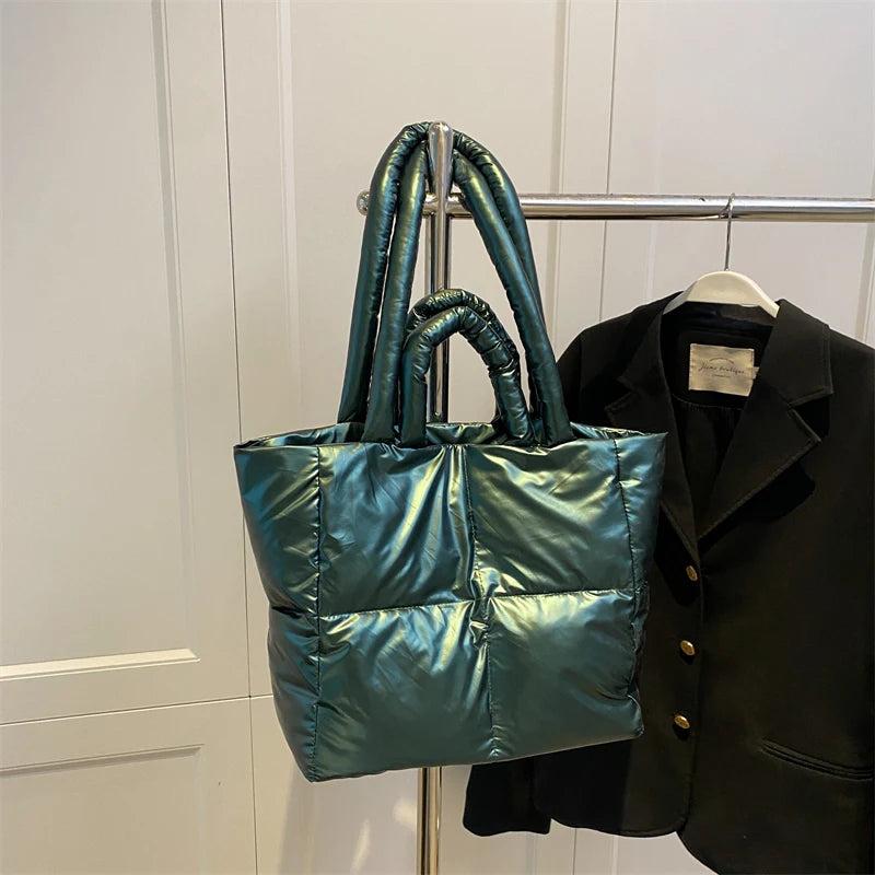 Down Cotton Handbag Large Tote Winter Soft Padded Shoulder Bags For Women