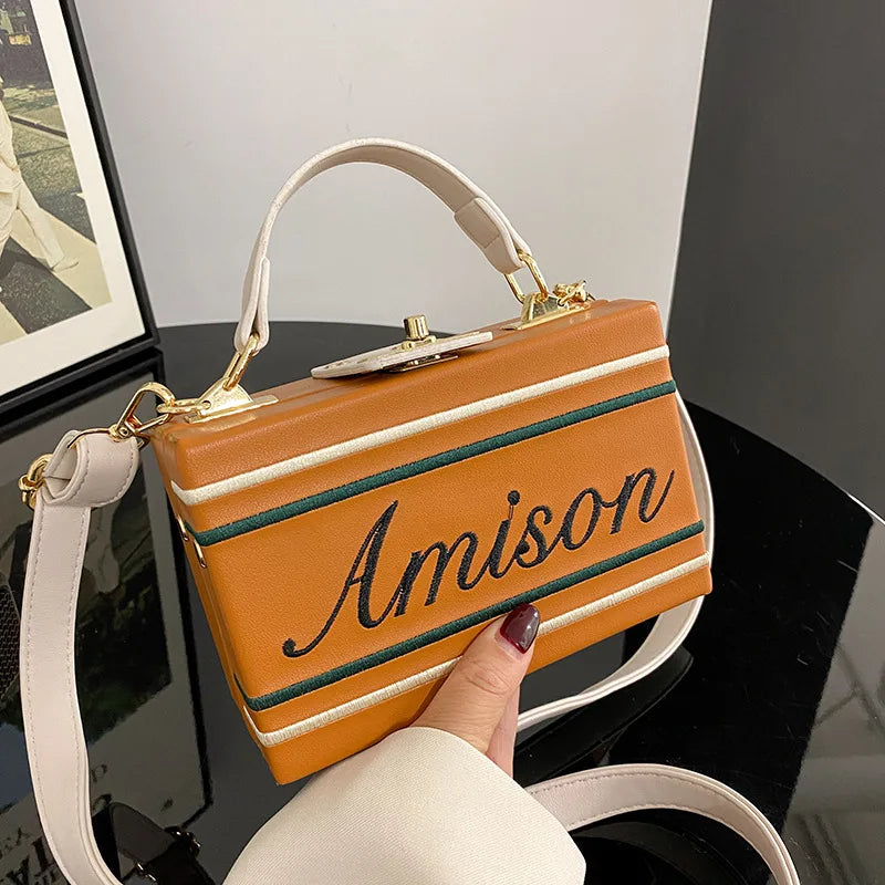 Embroidered Letter Box Style Purses Crossbody Bag Vintage Tote Bag