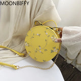 Embroidery PU Leather Women Crossbody Bag Flower Chain Shoulder