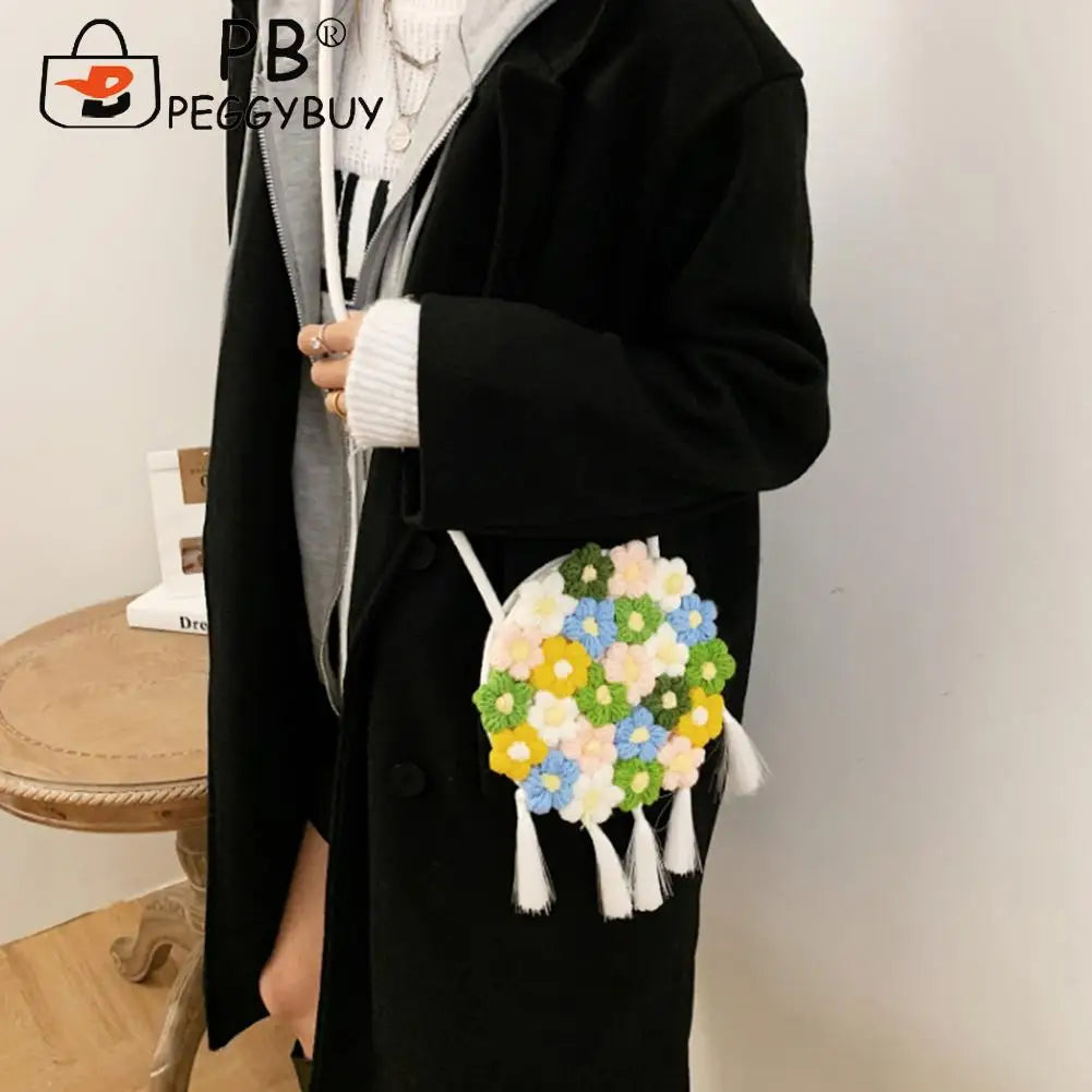 Elevate your style with this fashionable hand-woven shoulder crossbody bag featuring ethnic embroidery and hemp tassels. Made from cotton, this versatile purse adds a unique touch to any outfit.
