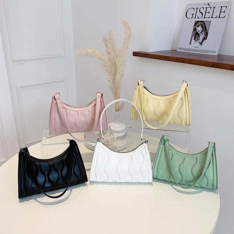 This stylish shoulder bag features a solid textured surface and a zipper closure. It has a large capacity and is versatile, making it a perfect handbag for any occasion.