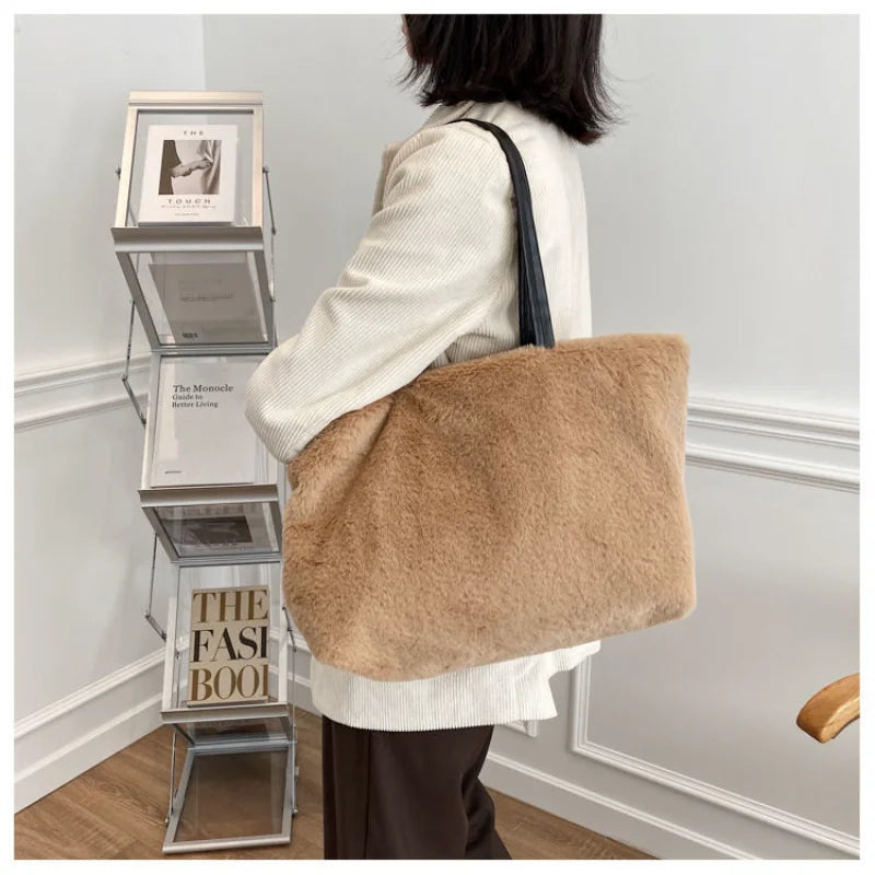 Faux Fur Bags Women Large Capacity Soft Tote Bag All-match Ladies Vintage