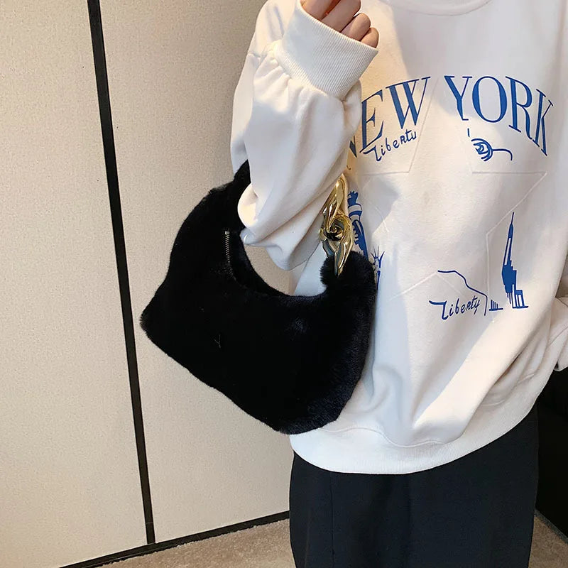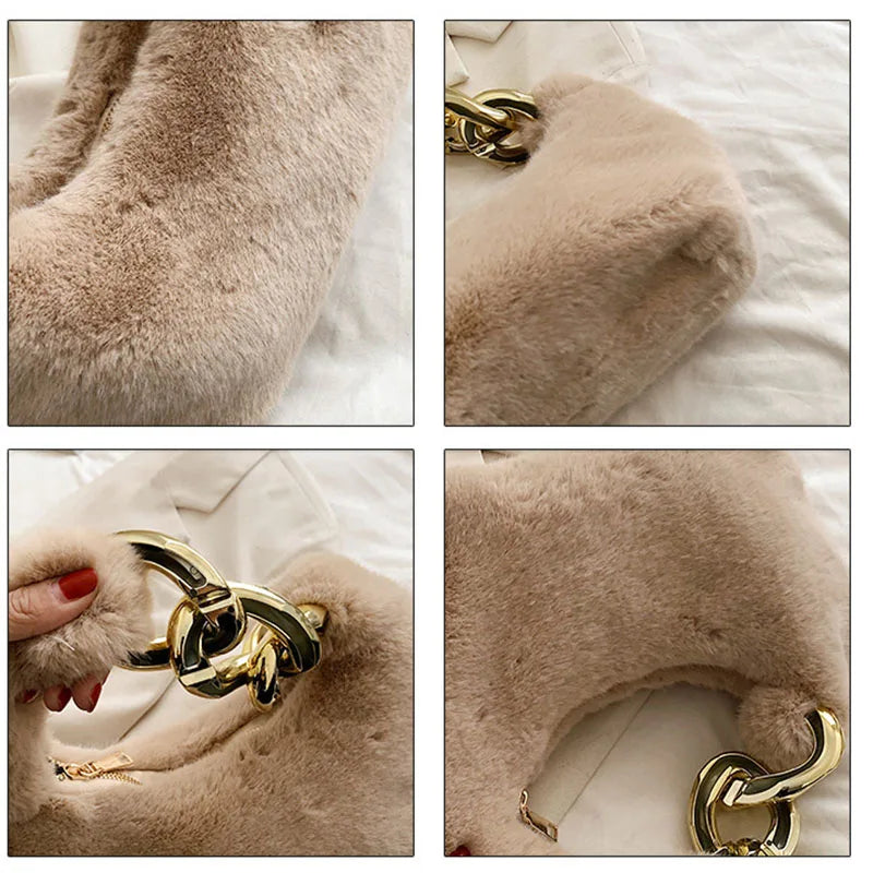 Faux Fur Chain Shoulder Bag for Women Winter Lady Tote Handbag