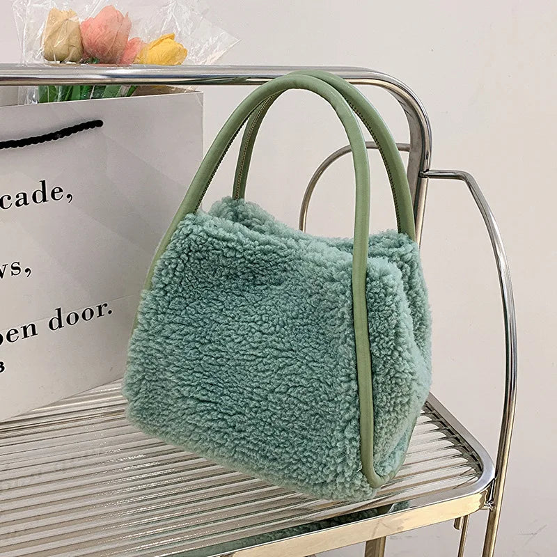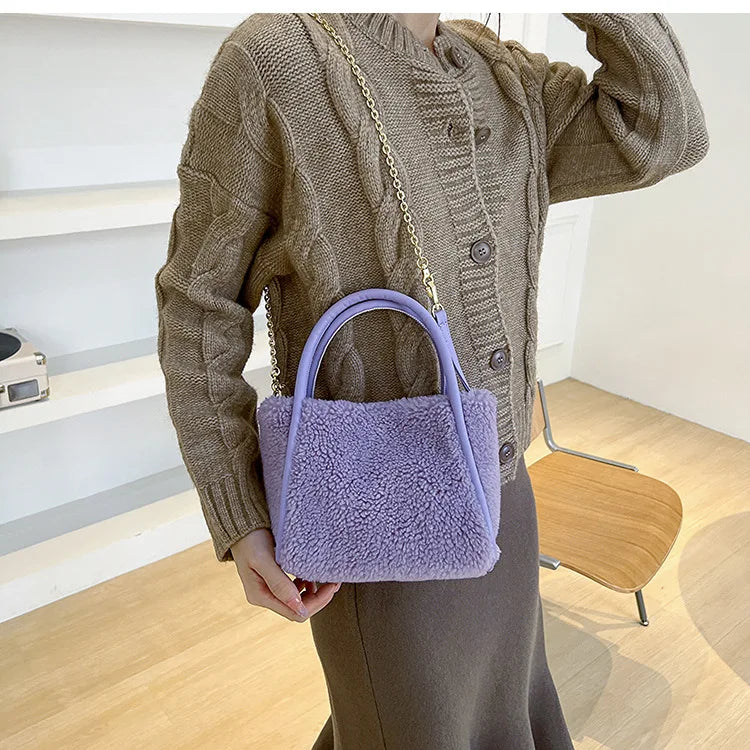 Faux Fur Crossbody Bag Plush Purses Handbags Lambwool Bucket Bag