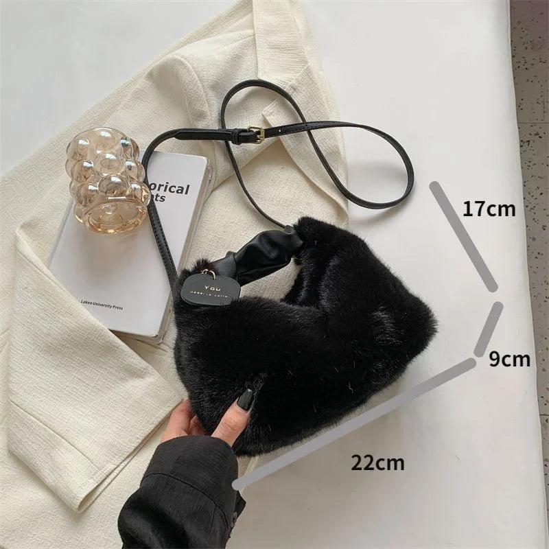 This small shoulder crossbody bag is perfect for casual outings. Made from faux fur, it adds a touch of style and warmth to your look.