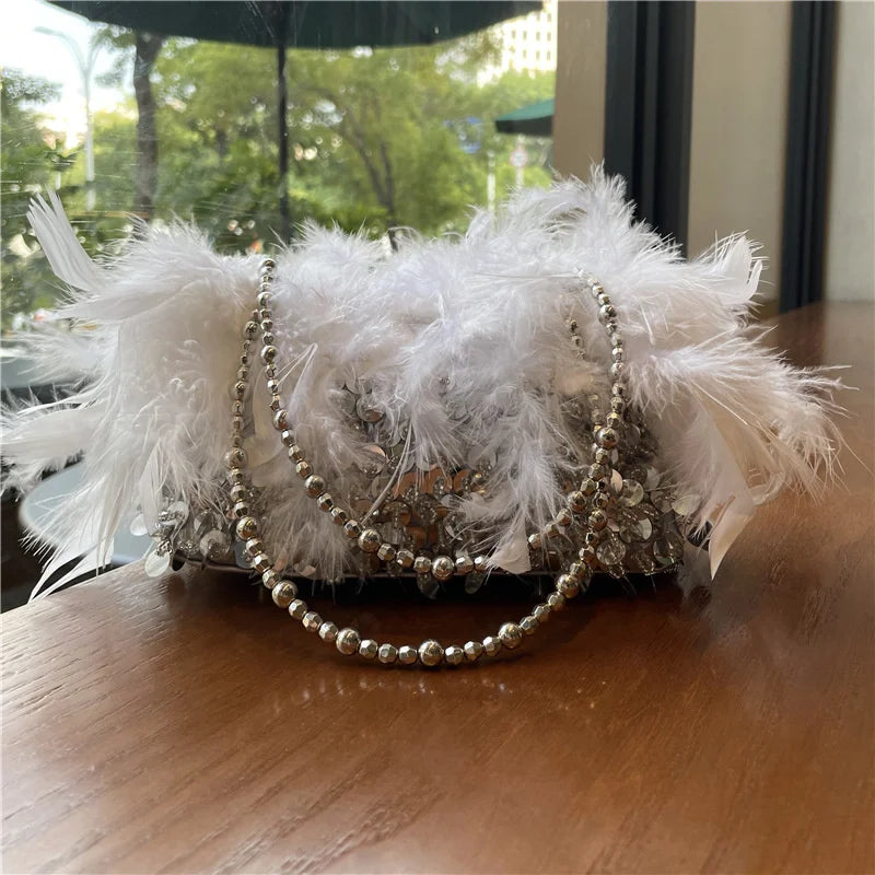 Feathers Evening Wedding Handbags For Women Sequin Clutch Bags