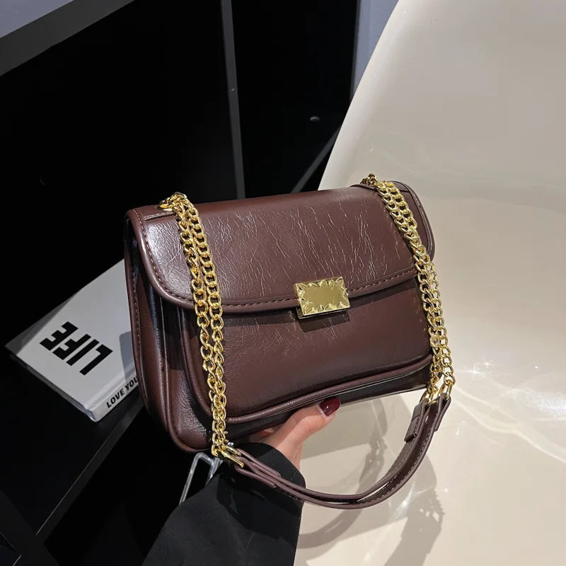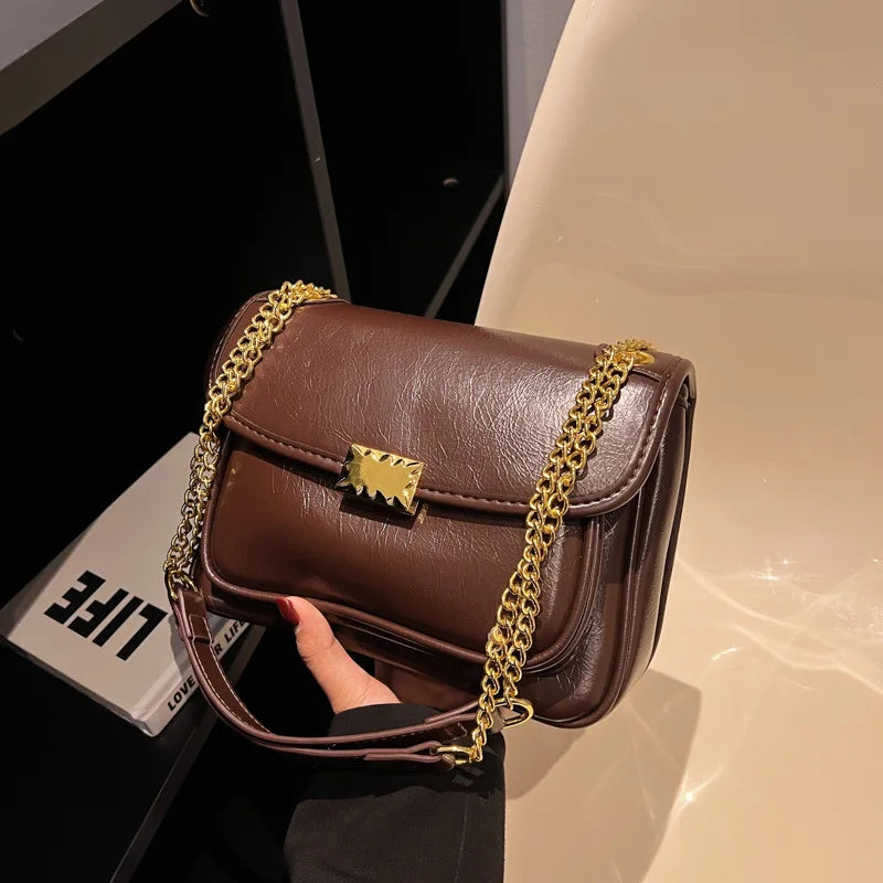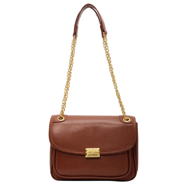 This women's shoulder bag is made of high-quality PU leather with a textured finish, featuring a chain strap for a stylish look.