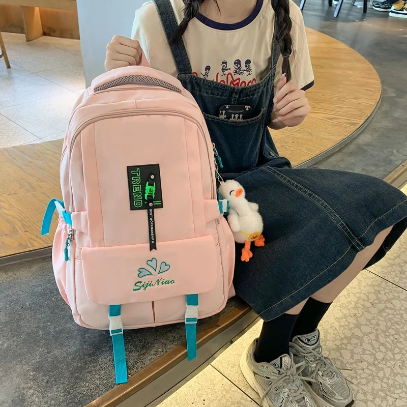 Description:This backpack features a spacious design with insert buckle, perfect for teenage girls. It is made of waterproof nylon and includes pockets for organization and embroidered details.Features: Large capacity backpack for teenage girls Waterproof nylon material for durability Features insert buckle and embroidered details Ideal for school, travel, and everyday...